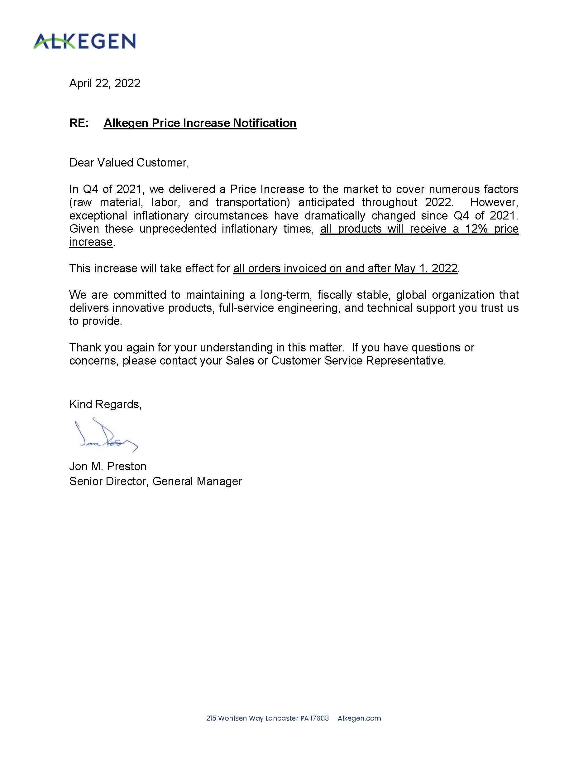 美國InterFace所有材料漲價(jià)12% 的緊急通知